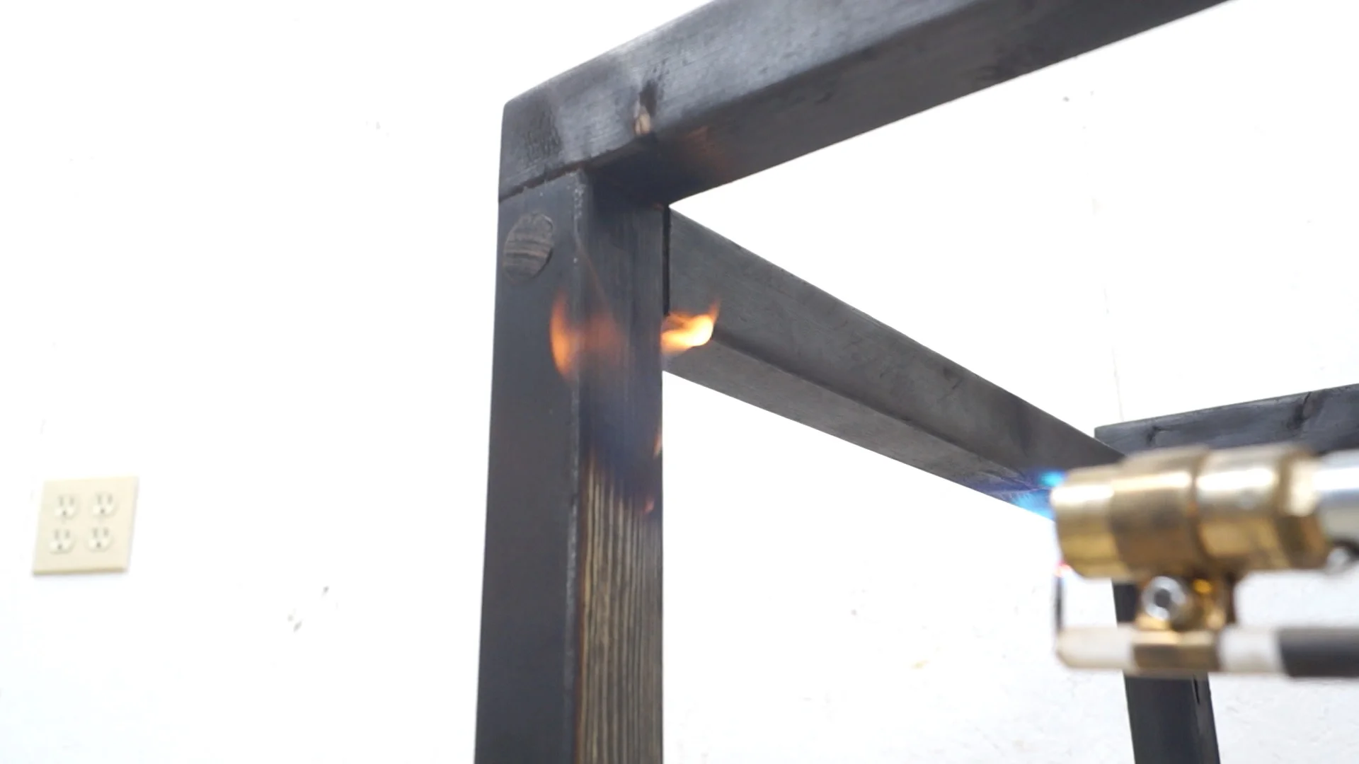 My initial plan for this project was to apply an ebony stain for a black look, but after applying a couple coats, it just wasn't dark enough, so I decided to burn it lightly with a small propane torch.