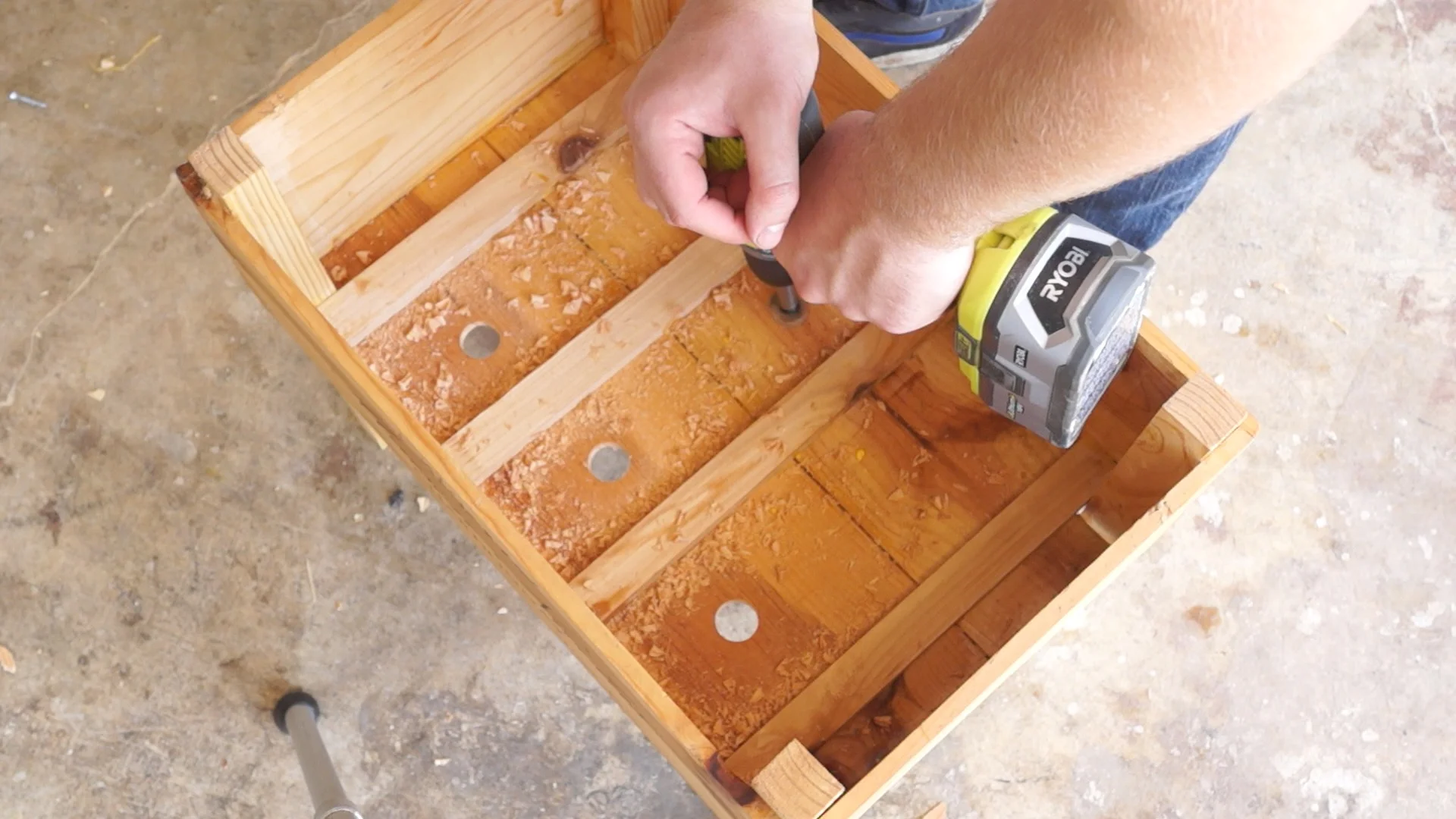I used some more spare wood as braces against the bottom of the box to make it more rigid using wood glue.