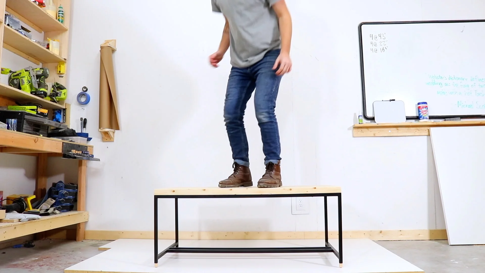 Overall, the base looks great and is definitely strong enough, but it's not as strong as steel. As I mentioned towards the end of the video, I think this is a great DIY solution, but I wouldn't feel comfortable selling this table. It has a bit of wobble, but is strong enough that I could jump on it (gently). Since building it, there are a couple of things I would do differently to strengthen the base. One idea would be to used metal, right angle brackets to reinforce each of the joints on the underside. Staggering the joints, like I did with the bottom two stretchers help too. That way there aren't two screws intersecting at the joint.